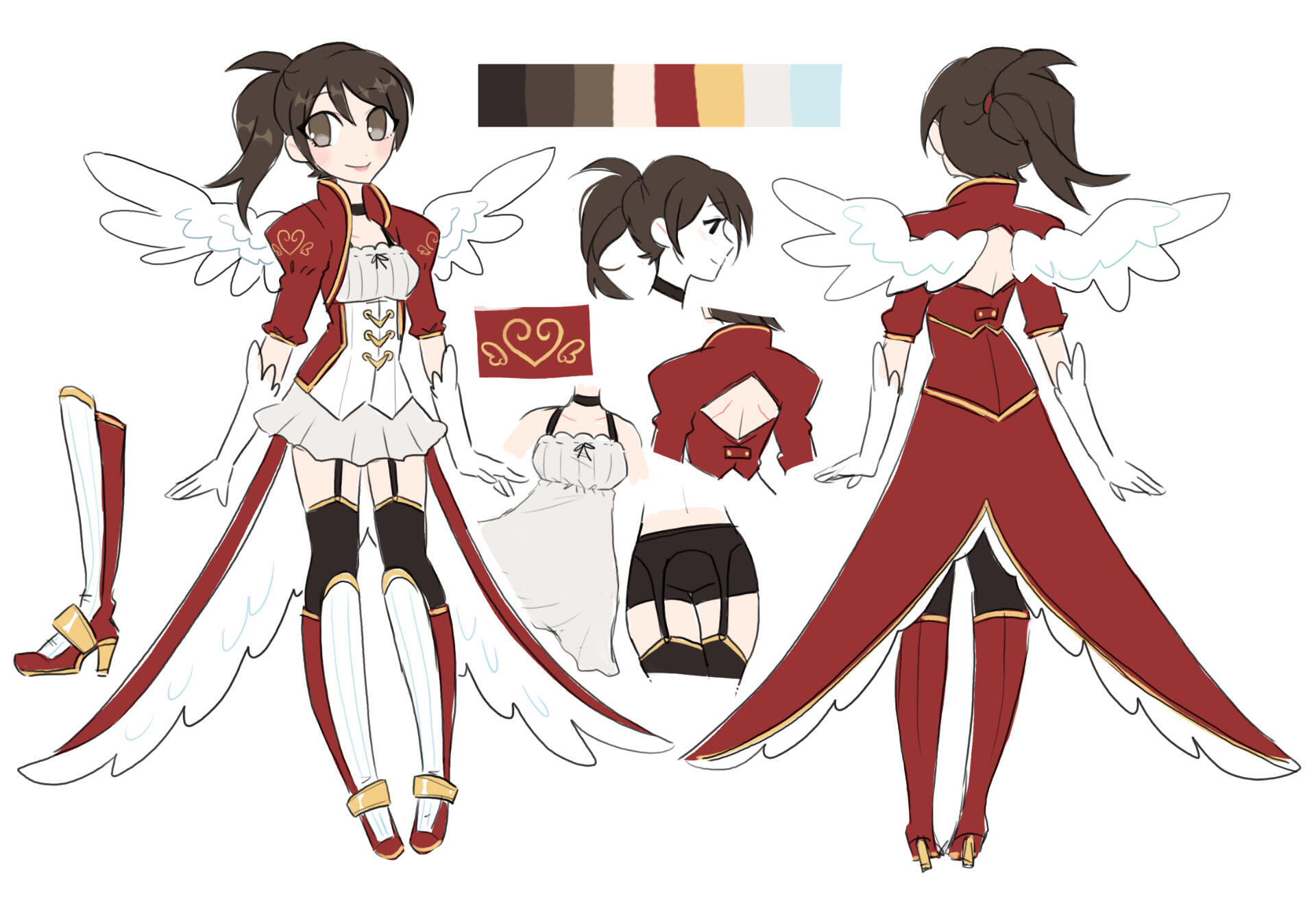 Wings: angel/dove-like. generally small but can expand in sizeEyes/Hair: Brown. Ponytail in back.